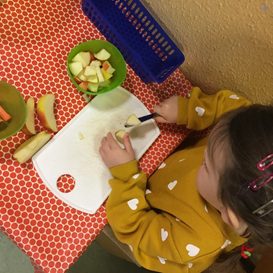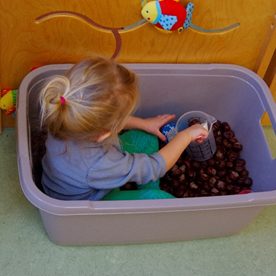 Wir unterstützen die Entwicklung der Selbstständigkeit, indem die Kinder mit größtmöglicher Eigenverantwortung alltägliche Aufgaben selbst übernehmen. So essen zum Beispiel schon unsere Allerjüngsten selbstständig mit dem Löffel und bringen ihre Fähigkeiten beim Umziehen mit ein. Die größeren Kinder bereiten beispielsweise ihre Obstmahlzeit selbst zu und übernehmen die Pflege des Raumes wie Kehren des Bodens oder Aufräumen der Arbeits- und Spielmaterialien.